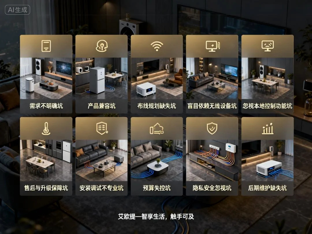 - 应对方法:定制前制作需求清单,区分 “刚需功能”(如智能照明、安防监控)和 “可选功能”(如智能花盆、智能香薰机);结合家庭成员结构(老人、小孩、宠物)和生活习惯(如是否经常出差)细化需求;与服务商沟通时明确标注核心需求,避免被推荐无关功能。