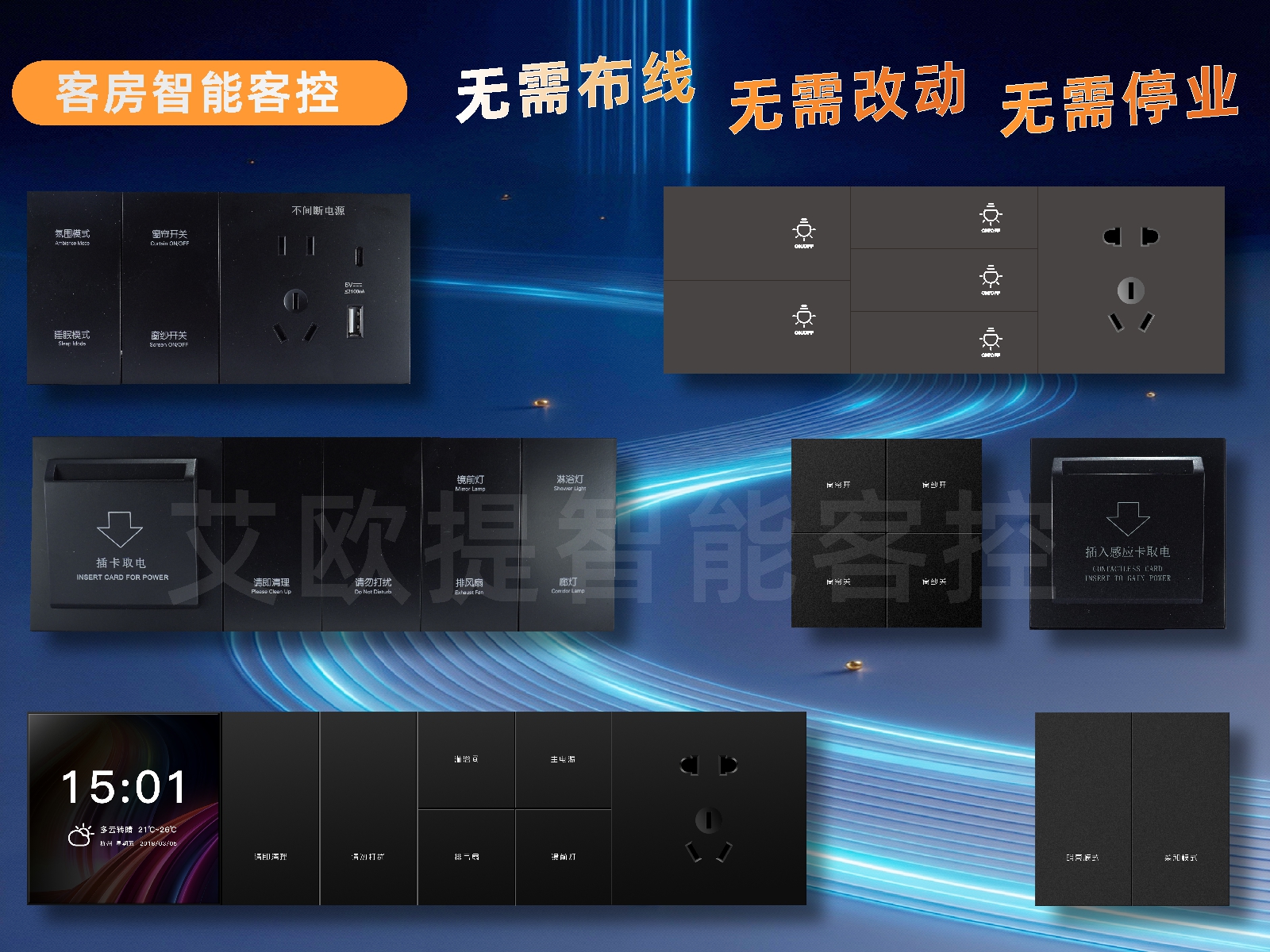 可能有人会说:“智能设备贵不贵?老酒店改造麻烦吗?”其实现在的智能客控早不是高端酒店的专属,中小酒店、民宿都能装。免布线方案不用拆墙打洞,100间房2-3天就能装完,不影响正常营业;每间房投入也就1000-2000元,比起一年省的人力、电费,这点投入根本不算什么。而且操作特别简单,不管是前台还是保洁,培训1小时就能上手,不用懂复杂技术,老人也能轻松用。