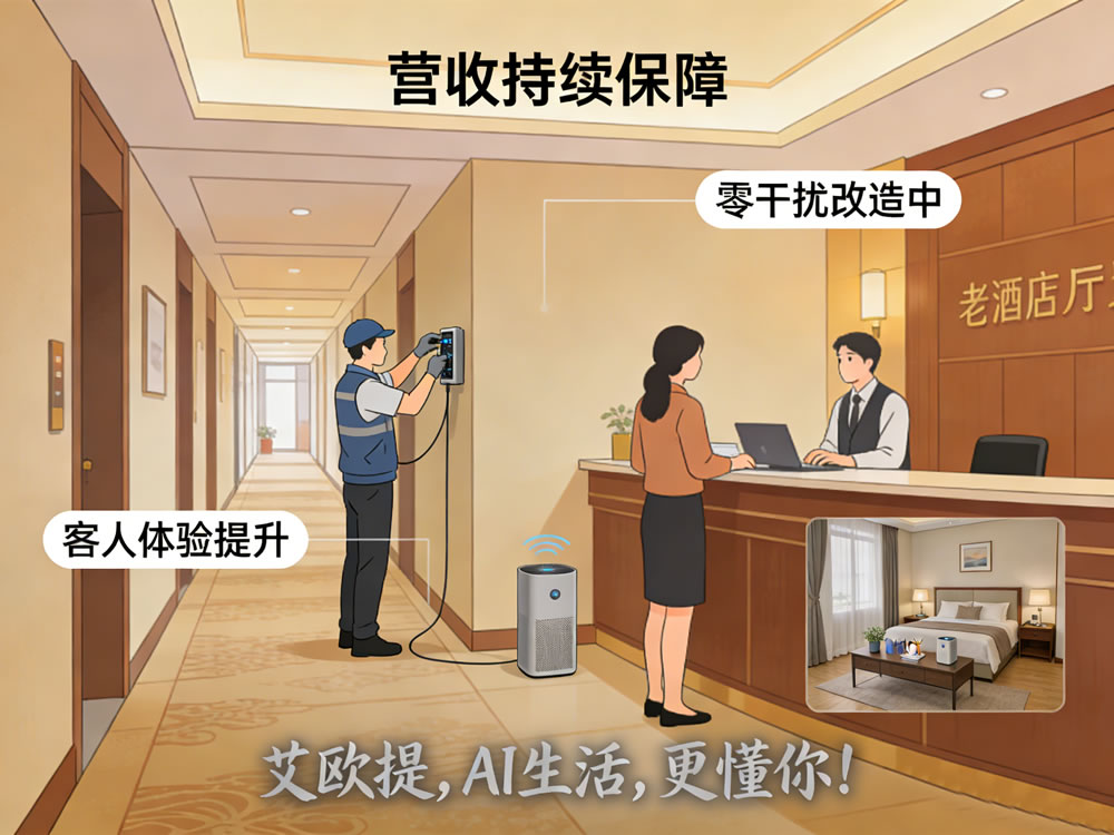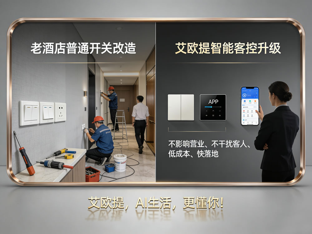 对于老酒店而言,智能客控改造的核心不是追求“高科技”,而是“实用、省心、不添乱”。艾欧提智能客控用轻量化改造、精细化施工,破解了老酒店改造停业的痛点,让老酒店无需停业,就能顺利完成智能化升级,既保住了营收,又提升了客人体验,真正实现“零干扰改造、高好评率”,这也是所有老酒店智能化转型的典型路径。